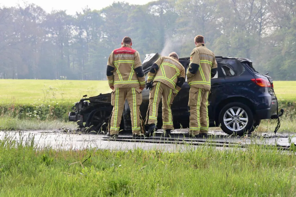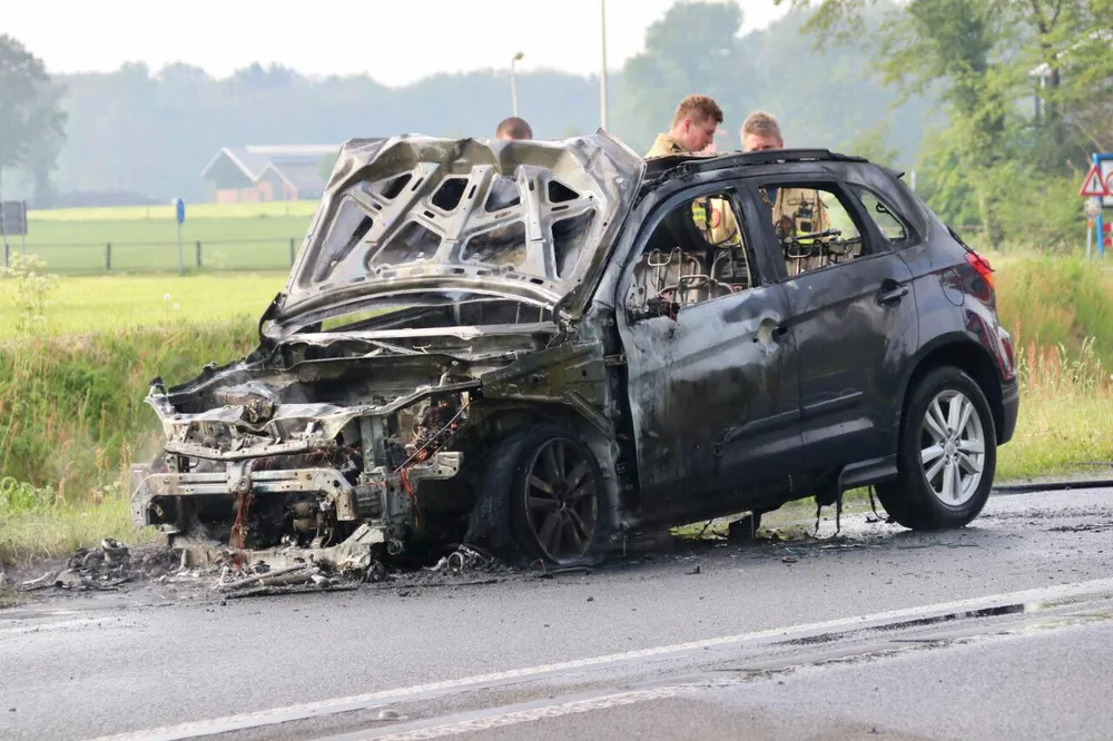De brandweer is zondagmorgen uitgerukt voor een autobrand op de N342 (Denekamperstraat) ten hoogte van Beuningen.