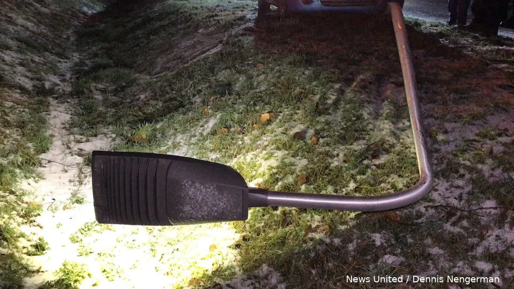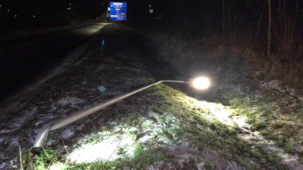 Op de Singravenstraat in Denekamp is een bestuurster van een auto uit de bocht gevlogen en heeft daarbij een lantaarnpaal uit de grond gereden.