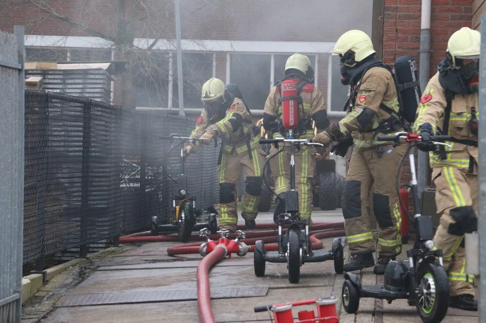 Volgens de brandweer bevinden zich in het pand voornamelijk elektrische scooters.
