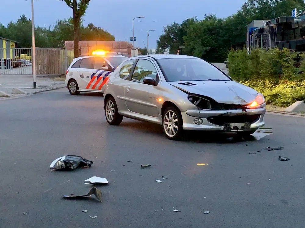 Zowel de auto als de bromfiets hebben forse schade opgelopen en zijn afgestreept.