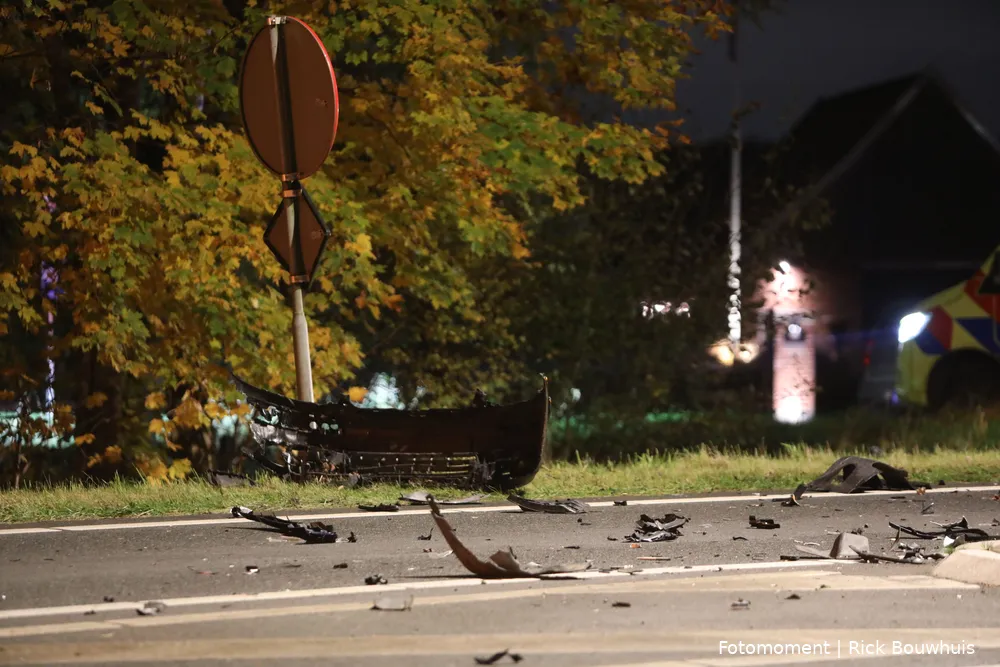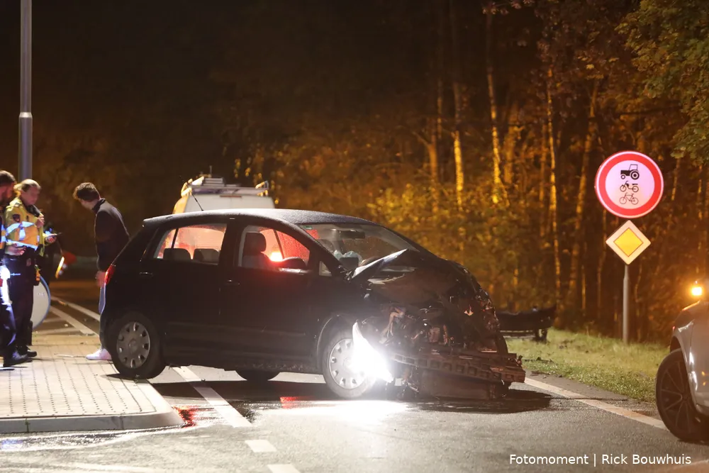 Eén bestuurder is per ambulance overgebracht naar het ziekenhuis en een voertuig raakte total loss.
