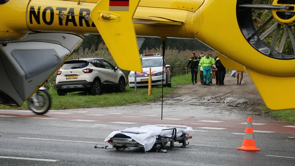De man werd met de traumaheli naar het ziekenhuis vervoerd.