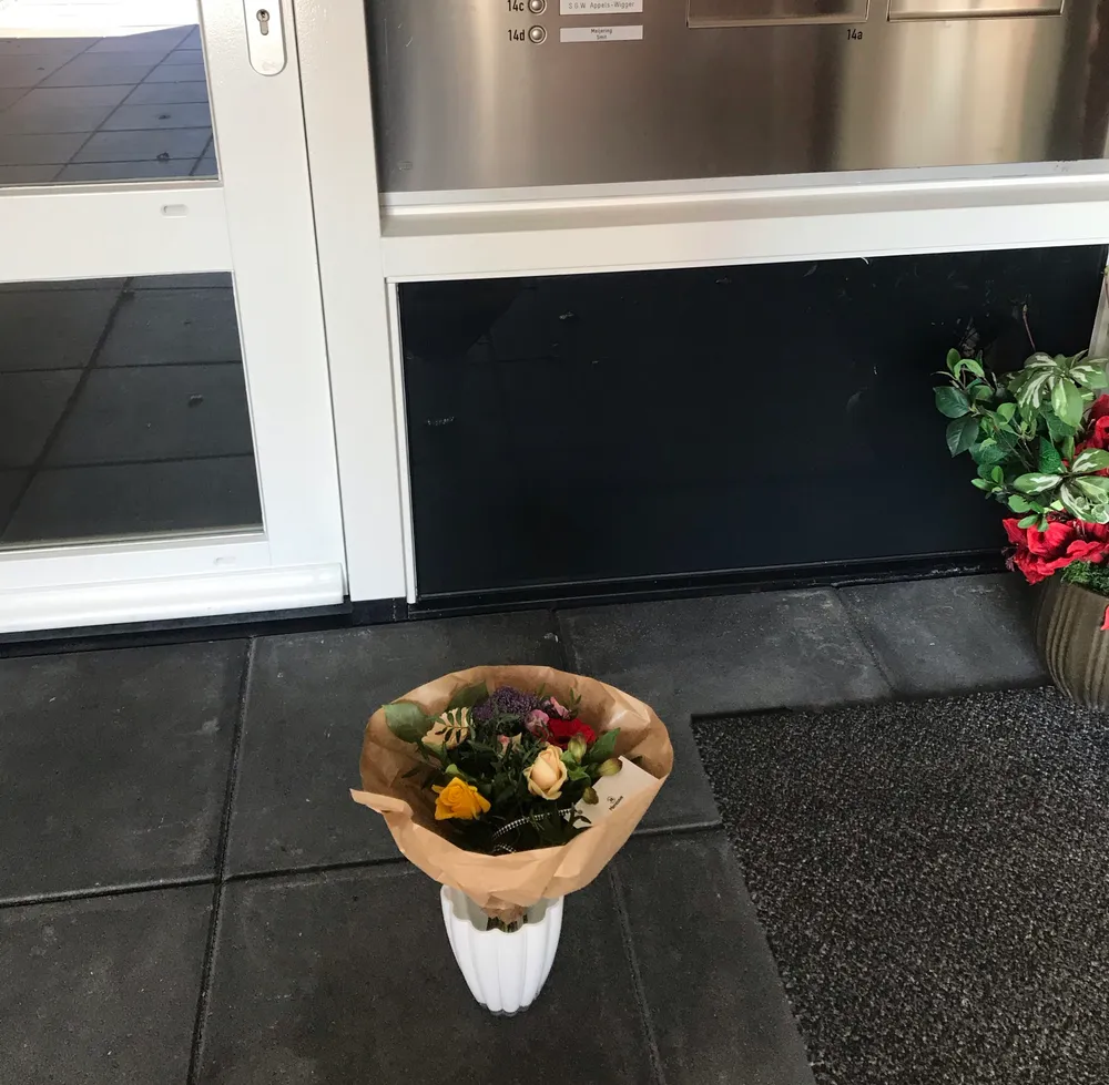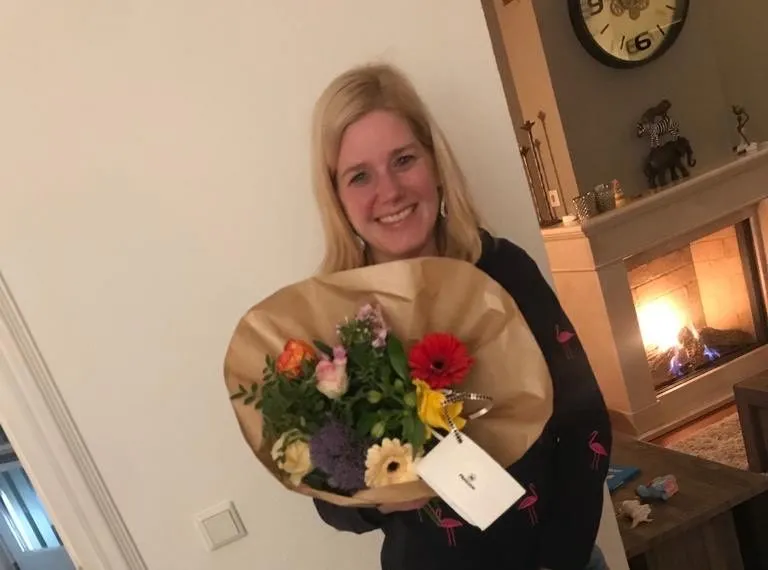 De bloemenactie werd uitgevoerd namens klanten vanMencavedie een cadeaubon van 50 euro of kleding van meer dan 100 euro hadden aangeschaft. "Ontzettend leuk om de reacties van de mensen te zien", vertelt eigenaresse Kirsten Mulder enthousiast. "Helaas is het wel een beetje onpersoonlijk door de maatregelen (anderhalf meter afstand houden), maar het kon nu even niet anders..."
