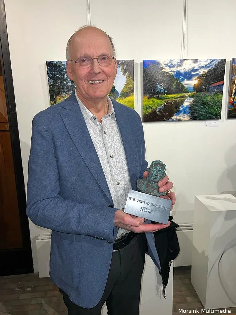 En dan de midwinterhoornblazers. Wintels geldt als ‘veurman’ van de Doarper Mirreweenterhoarnbloazers en zorgt er daarmee voor dat dit cultureel erfgoed volop in de belangstelling blijft staan. “Aan iemand die zich op dusdanige wijze inzet voor cultuur en het behoud van cultureel erfgoed, is deze prijs goed besteed”, concludeerde wethouder Benno Brand. Hij overhandigde Wintels zijn prijs; een replica op schaal van het bekende borstbeeld van Dingeldein.