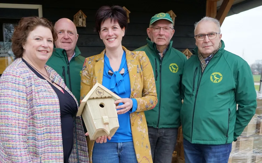 Wethouder Ilse Duursma kwam gisteren al een kijkje nemen bij de nestkastjes die door stichting Vogelwerkgroep Geesteren en de natuur- en vogelwerkgroep De Grutto zijn gemaakt. Ook sprak zij haar waardering uit richting alle partijen voor de mooie samenwerking en het resultaat.