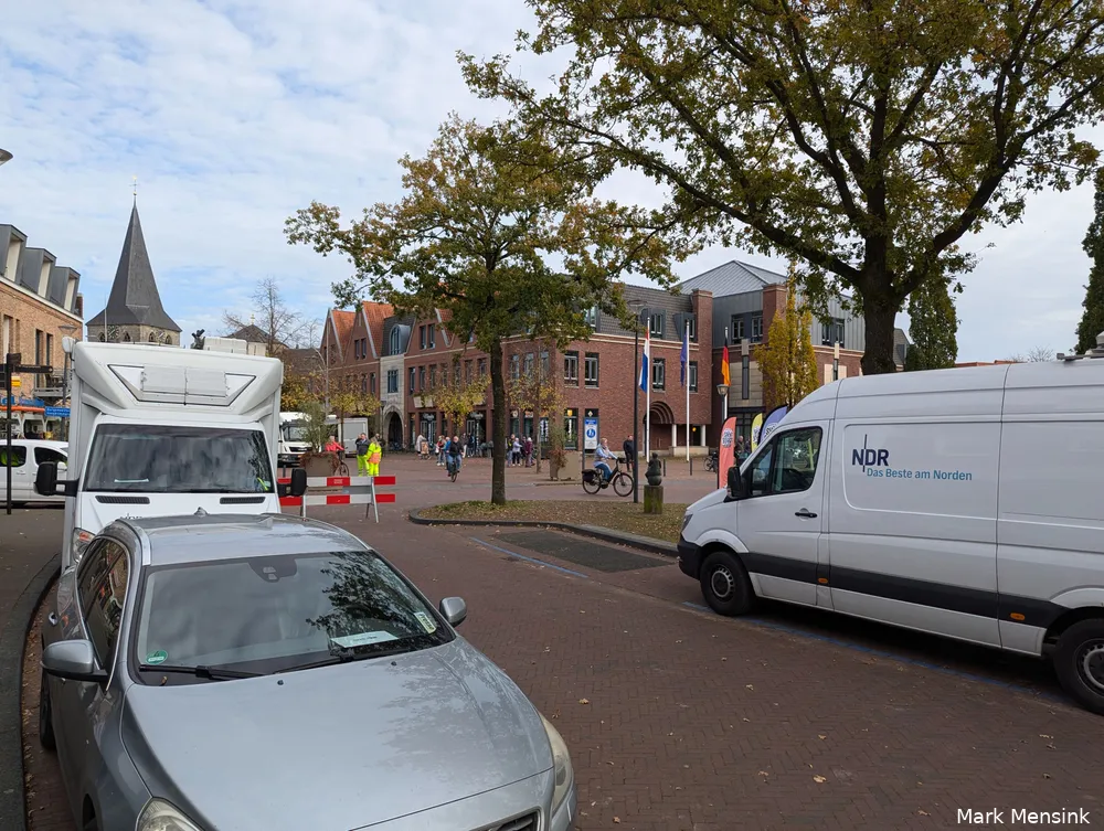 En dat niet alleen. Er is ook sprake van een licht opgewonden, of - beter gezegd - een beetje gespannen sfeer. Kortom, het is een bijzondere dag voor Denekamp. Dat merken ook de marktkooplui. "Die moeten snel wieberen. Voordat de koning komt en de Duitse president", weet een dorpsbewoner tegen kwart voor twee te vertellen. "Normaal staan ze er wel langer, maar vandaag is het natuurlijk allemaal een beetje anders. Eigenlijk hadden ze nu al weg moeten zijn."