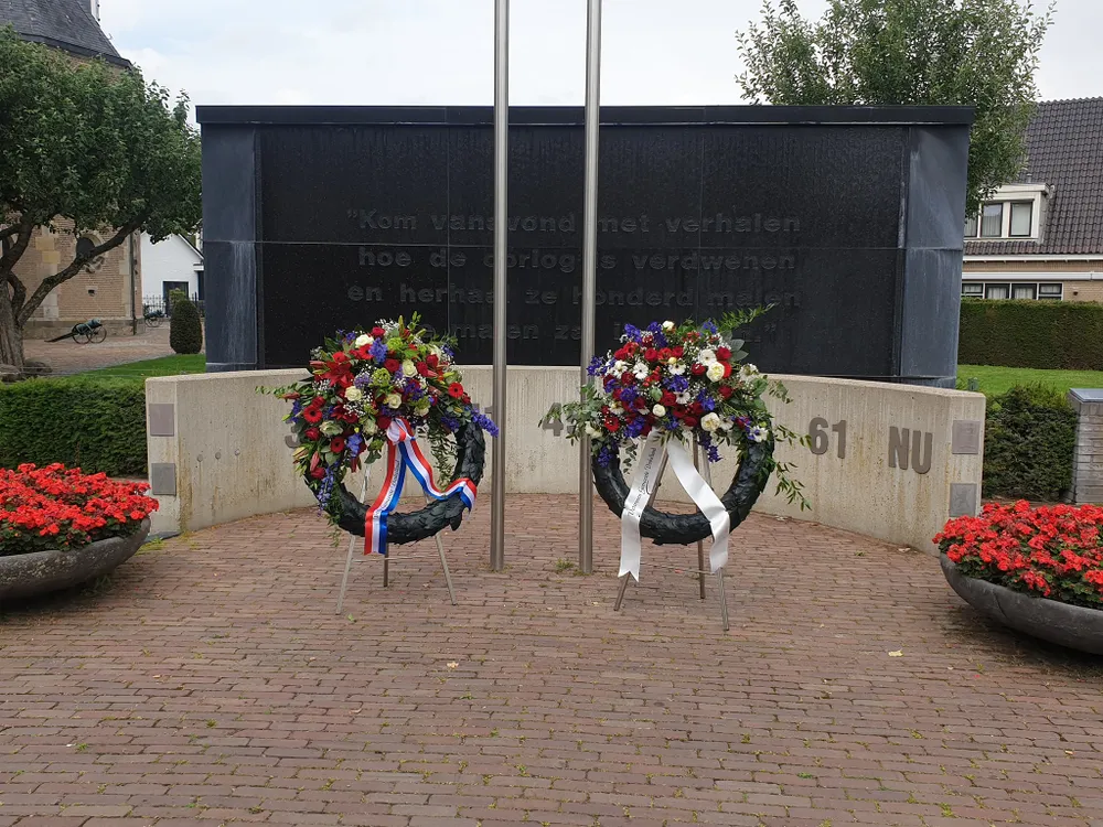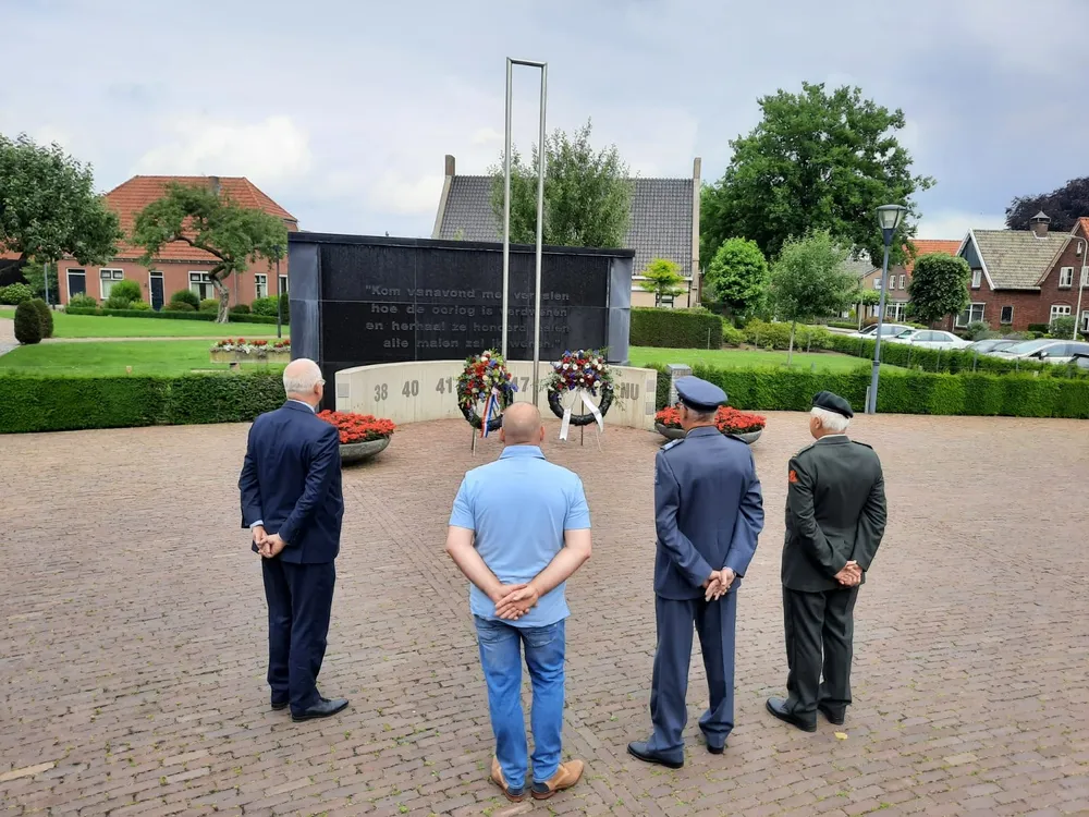 De bescheiden bijeenkomst werd gehouden ter vervanging van de jaarlijkse Veteranendag, welke ditmaal vanwege de coronomaatregelen geen doorgang kan vinden. Niettemin legde burgemeester John Joosten namens de gemeente een krans bij het monument, net als in andere jaren.