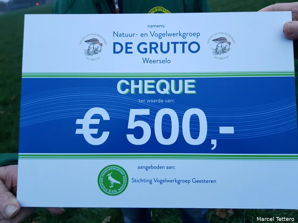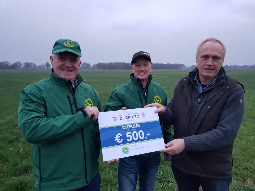 Vogelwerkgroep Geesteren heeft van de zustervereniging in Weerselo een schenking van 500 euro gekregen voor de actie Red de Grutto.